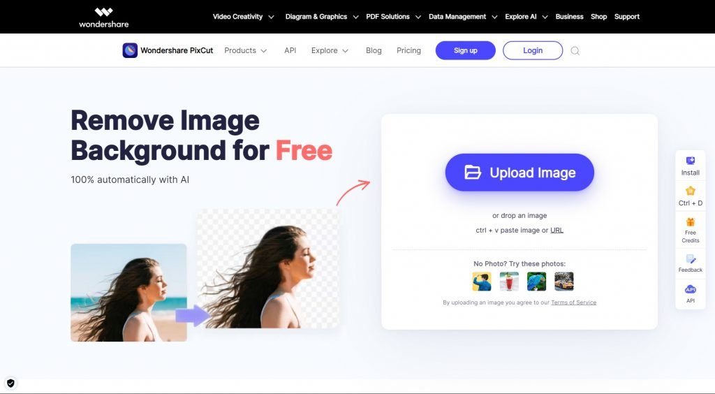 Wondershare Pixcut یک سایت ویرایش تصویر است که به خصوص برای حذف پسزمینه و قراردان زمینه دلخواه برای تصاویر طراحی شده است. این برنامه به شما کمک میکند که به راحتی قسمتهای ناخواسته یا مزاحم تصویر را حذف کنید و امکان تعویض پسزمینه با الگوها یا تصاویر دلخواه خودتان را دارید. البته برای ویرایش تخصصی نیاز به خرید اشتراک دارید.