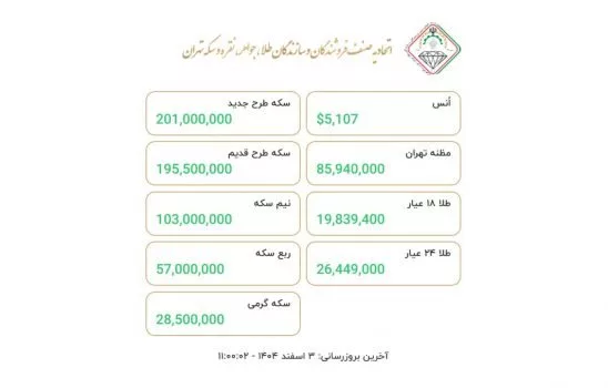 مالی و سرمایه گذاری قیمت روز طلا و سکه [۳ اسفند ۱۴۰۴]