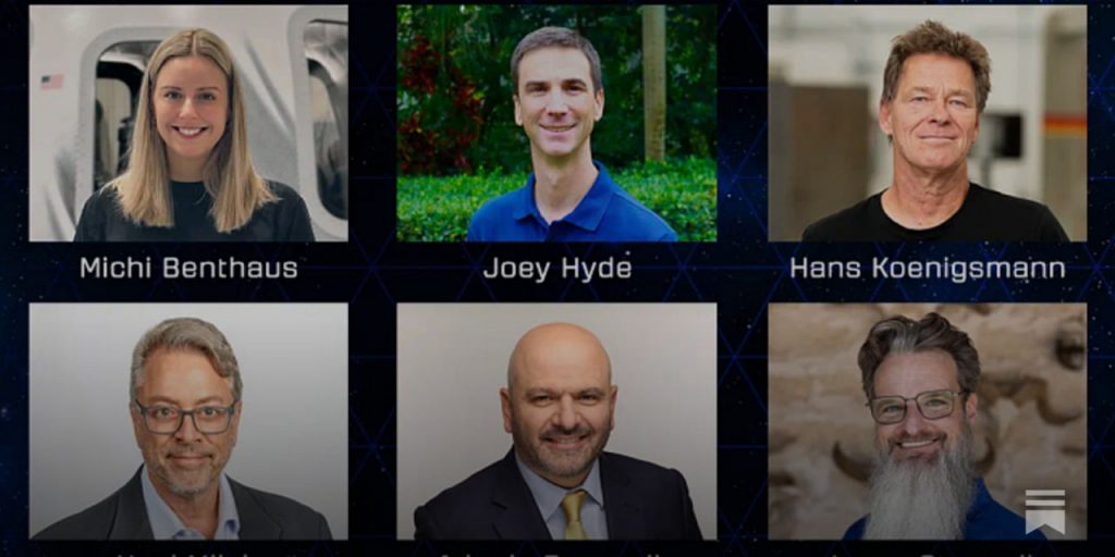 «جویی هاید»، سرمایهگذار و فارغالتحصیل دکتری اخترفیزیک، «هانس کونیکسمن»، مهندس هوافضای آلمانی–آمریکایی، «نیل میلچ»، کارآفرین، «آدونیس پورولیس»، مهندس معدن و فعال حوزه انرژی و منابع طبیعی و «جیسون استنزل» دیگر مسافران آن هستند.