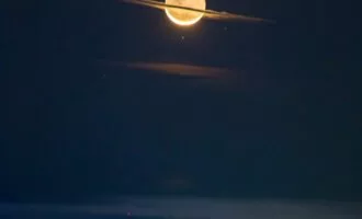 چرا زحل انقدر بزرگ بهنظر میرسد؟ آنچه در تصویر مشاهده میشود ابرهای جلویی زمین هستند که از مقابل ماه عبور میکنند.