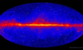 نقشه مشخص شده از تمام آسمان نشان میدهد که کیهان برای «تلسکوپ فضایی پرتو گامای فرمی» ناسا چگونه به نظر میرسد.