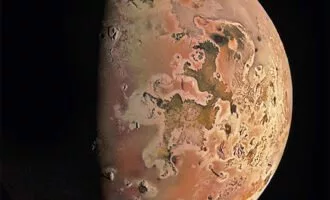 هفته گذشته، جونو از فاصله 12000 کیلومتری یو عبور و این تصویر از سطح این قمر فعال را ثبت کرد.
