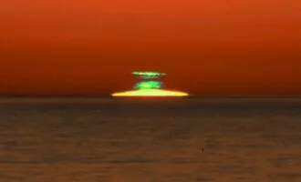 درخش سبز به دلیل زاویه دید ما رخ داده و خود خورشید تغییری نمیکند.