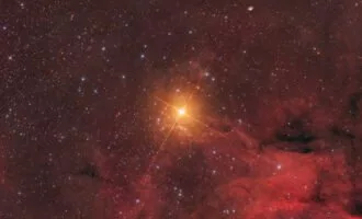 بخش مرکزی سحابی مرداب، تحت تأثیر تابش سرخ اتمهای هیدروژن یونیزه است.
