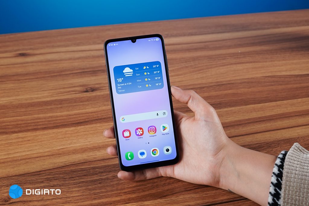 جنس بدنه در بخش قاب پشتی و فریم از پلاستیک است؛ چیزی که در این رده قیمتی کاملاً قابل انتظار است. سامسونگ برای این مدل گواهی IP54 هم در نظر گرفته؛ یعنی در برابر گرد و غبار و پاششهای سبک آب تا حد قابل قبولی مقاوم است و اگر چند قطره آب روی آن بریزد، نیاز نیست خیلی نگران شوید. در مجموع با توجه به بازه قیمتی (90 دلار)، میتوان گفت طراحی این گوشی نمره خوبی میگیرد.
