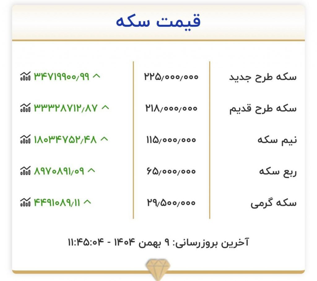 همچنین قیمت سکه طرح جدید نیز تا به این لحظه، ۲۲۶ میلیون تومان در سایت اتحادیه طلا و جواهر اعلام شده که نسبت به روز گذشته، ۲۴ میلیون تومان افزایش داشته است.