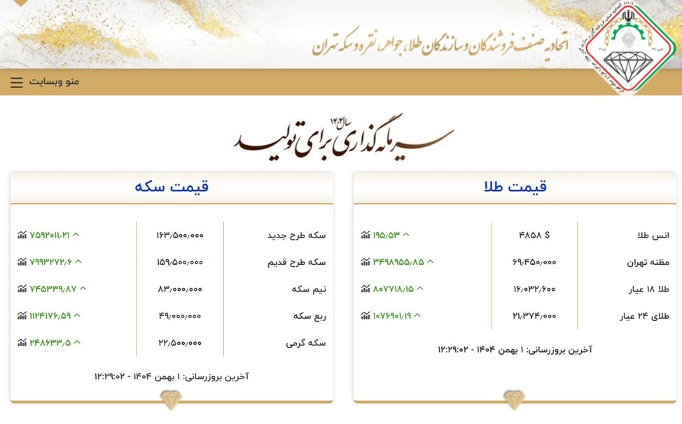 قیمت نیمسکه، ربع سکه و سکه گرمی در سایت این اتحادیه به ترتیب ۸۳ میلیون تومان، ۴9 میلیون تومان و ۲۲ میلیون و ۵۰۰ هزار تومان اعلام شده است.