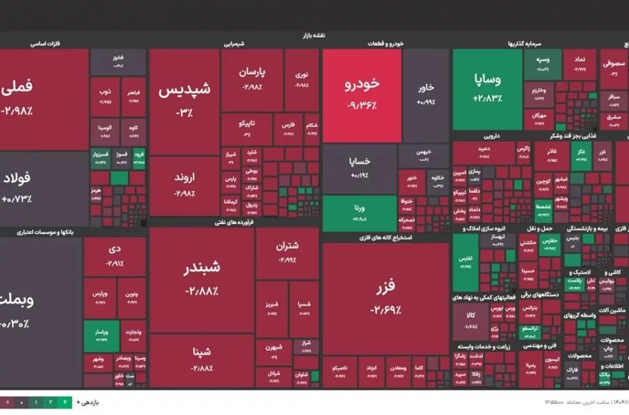 فملی، فارس و خودرو بیشترین اثر را روی کاهش شاخص کل داشتند. امروز نماد خودرو پس از افشای اطلاعات با اهمیت الف بدون محدودیت نوسان باز شد و در نهایت بیش از 9 درصد افت قیمت داشت.