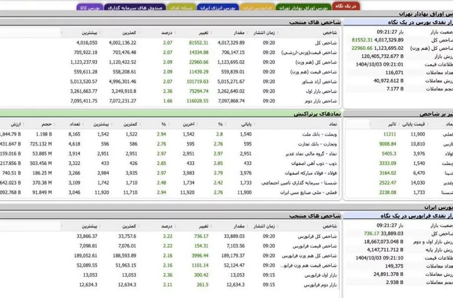 شاخص کل بورس تهران امروز ۳ دیماه ۱۴۰۴ با ثبت رکوردی جدید وارد کانال ۴ میلیون شد.