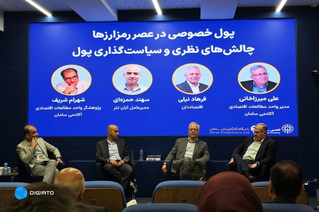 نشست تخصصی «گذشته و آینده پول با نگاهی به چشمانداز رمزارزها»، دیروز، دوشنبه ۲۶ آبان، در آکادمی سامان برگزار شد. در این نشست، پنلی با عنوان «پول خصوصی در عصر رمزارزها» با حضور «فرهاد نیلی»، اقتصاددان، «سهند حمزهای»، مدیرعامل «آبانتتر» و «علیرضا میرزاخانی»، مدیر واحد اطلاعات اقتصادی آکادمی سامان، برگزار شد و در آن به بررسی تحول مفهوم پول، امکانپذیری پول خصوصی، و نسبت آن با نظام پولی مبتنی بر بانکهای مرکزی پرداخته شد.