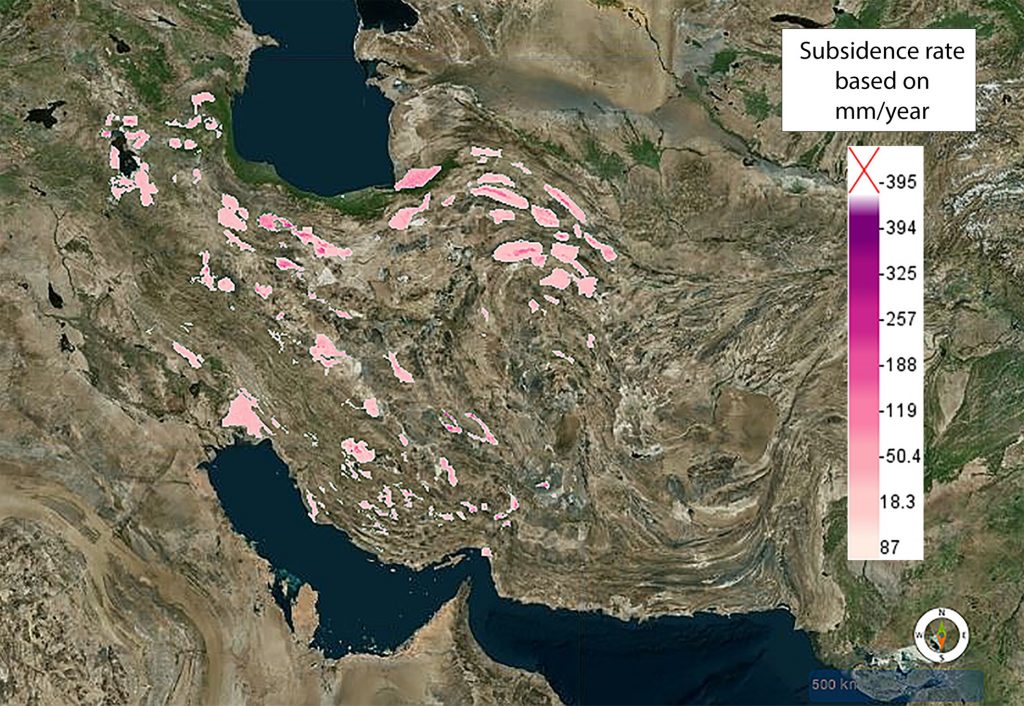 به گفته او، بیشترین نرخ فرونشست ایران در قهستان رفسنجان کرمان نزدیک به ۴۰ سانتیمتر در سال و در خود تهران اخیراً به ۳۰ سانتیمتر در سال رسیده است.