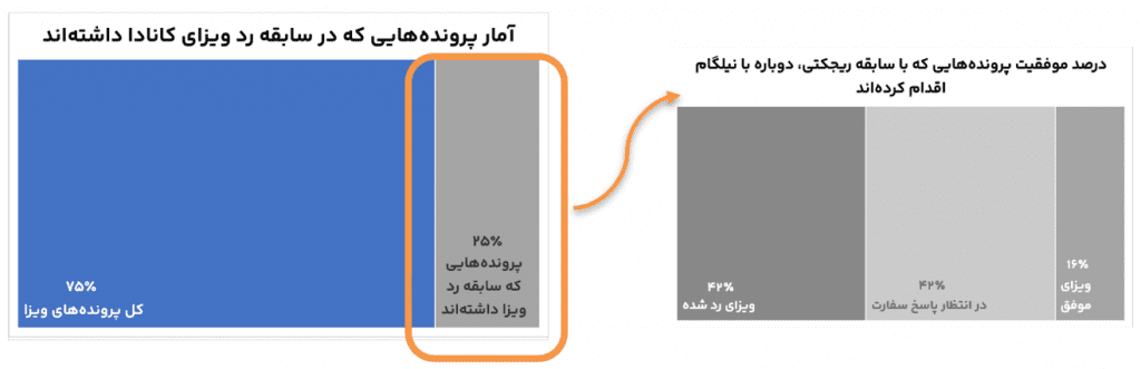 نتایج بهدستآمده از بررسی پرونده این افراد که برای شانس مجدد به نیلگام اعتماد کردهاند نشان میدهد که علیرغم سابقه ریجکتی، ۱۶ درصد موفق به دریافت ویزای کانادا شدهاند.