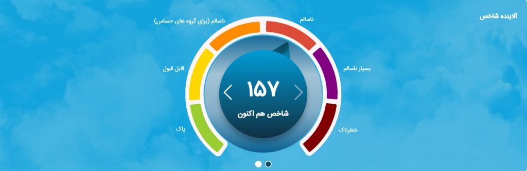 بر اساس اعلام شرکت کنترل کیفیت هوا، شاخص آلایندگی هوای تهران در زمان تنظیم این خبر به ۱۵۷ رسید و هوا در شرایط ناسالم برای تمام گروههای سنی قرار گرفت.