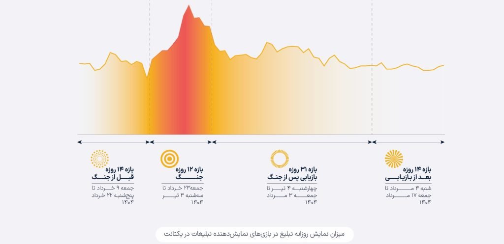 البته در دو روز پایانی جنگ، روند بودجههای تبلیغاتی وارد مسیر صعودی شد و نشانههایی از بازگشت تدریجی بازار تبلیغات آنلاین قابل مشاهده بود. با پایان جنگ و در دوره بازیابی، بودجه کمپینها به تدریج افزایش یافت و در نهایت به سطح نزدیک به دوره پیش از جنگ بازگشت.