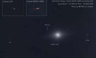 تصویر نادر دو دنبالهدار در خلال کسوف را ثبت کرد و از موارد نادری است که دنبالهداری را درحال گذر از سطح زمین شکار کرد.