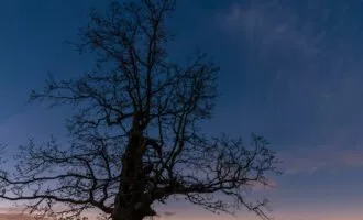 در سایه نخل، تصویر گرفتگی از بین شاخههای متقاطع روی زمین قابل تشخیص است. تصویر به سبک دوربین سوراخسوزنی دیده میشود.