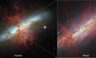 بررسی دقیق تصویر جدید وب بهطور غیرمنتظرهای نشان میدهد که غبار قرمز درخشان درحال خروج از مرکز کهکشان سیگار با پلاسمای داغ مرتبط است.