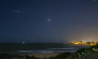 در این تصویر یک عکاس از آسمان پرنور شهر زوبین در لهستان دور شد تا نزدیکترین فاصله این دو سیاره را به تصویر بکشد.
