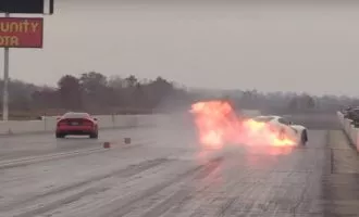 خودرو آتش سوزی یک دوج وایپر در مسابقات درگ [تماشا کنید]