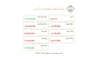 مالی و سرمایه گذاری قیمت روز طلا و سکه در ۲۳ فروردین ۱۴۰۵