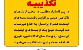 ایرانسل میگوید قیمت هیچیک از بستههای اینترنتش از دی ۱۴۰۲ تغییری نداشته است