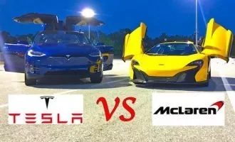 خودرو رقابت شانه به شانه تسلا مدل اکس و مک لارن 650S در مسیر چهارصد متر [تماشا کنید]