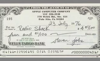 استیو جابز این چک را سه ماه پس از احداث شرکت اپل برای پرداخت 4 دلار به فروشگاه RadioShack امضا کرده بود.