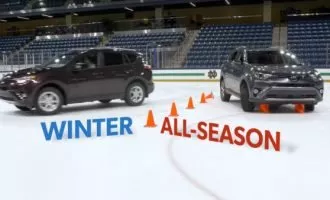 خودرو مقایسه تایرهای زمستانی و تایرهای چهار فصل در شرایط رانندگی روی سطوح لغزنده [تماشا کنید]