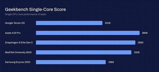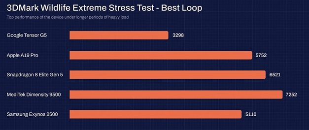 - Tensor G5 و Exynos 2500: به دلیل محدودیتهای حرارتی، ضعیفترین عملکرد را نشان دادند.