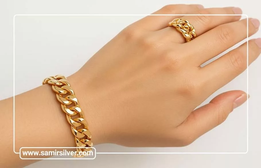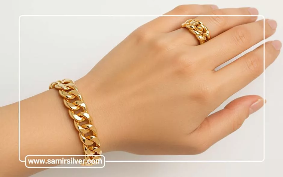 - بانگل: فرم یکپارچه و براق. مناسب مهمانی و استایل رسمی. به خاطر آبکاری های طلایی و رزگلد جلوه پر رنگ تری دارد. از نمونه های این دستبند می توان به بانگل طلایی براق، بانگل رزگلد با بافت چکشی، بانگل نقره ای مینیمال اشاره کرد.