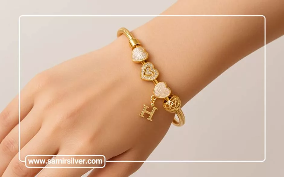 - الهام گرفته از چارم: برخی مدل ها آویز های کوچک دارند و حس شخصی سازی ایجاد می کنند، هر چند چارم کلاسیک ندارند.از نمونه های این دستبند می توان به دستبند با آویز قلب، ستاره یا حرف اسم اشاره کرد.