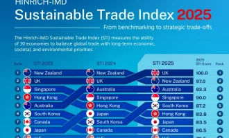دادههای این اینفوگرافیک از Hinrich Foundation گرفته شده است که نسخه ۲۰۲۵ «شاخص تجارت پایدار» (Sustainable Trade Index – STI) را بررسی میکند. در روزیاتو ...