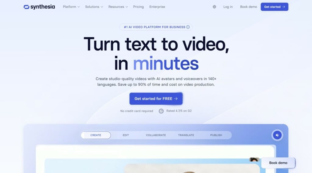 Synthesia یکی از قدرتمندترین هوش مصنوعیهای ساخت ویدیو که امکان ساخت ریلز با آواتارهای مجازی و صداهای طبیعی را فراهم میکند. با استفاده از سینتزیا حتی میتوانید ویدیوهای خود را ادیت کرده و منتشر کنید.