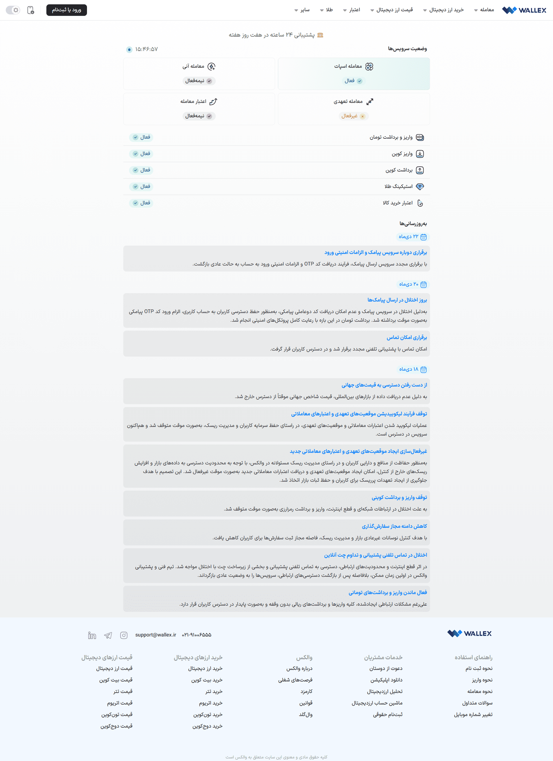 تایملاین وضعیت سرویسهای والکس را میتوانید در تصویر بالا ببینید. برای مشاهده تصویر در ابعاد بزرگتر روی آن کلیک کنید.