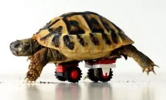 این لاک پشت ناتوان یک ویلچر لگویی دارد